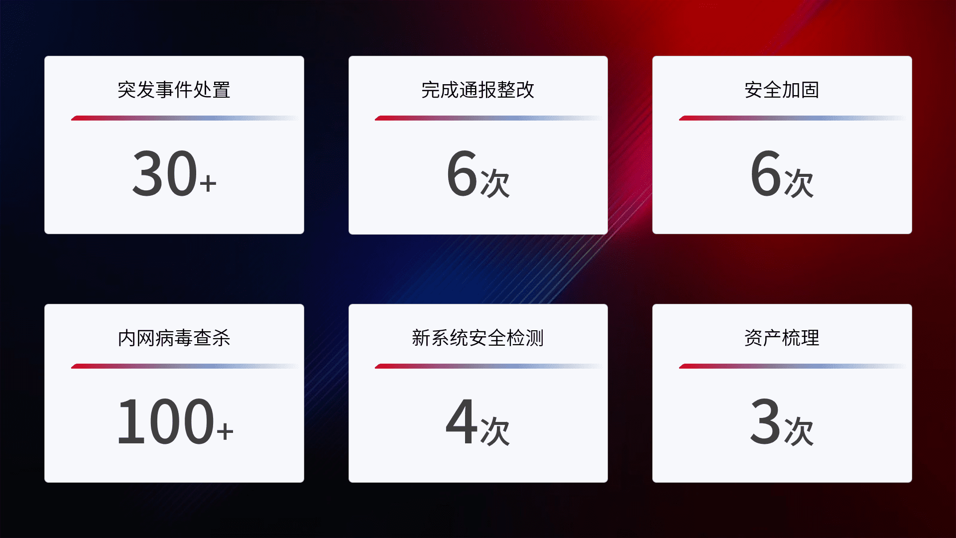 网络安全加固与风险管理:通过技术加固手段,,如加强区域隔离,,,,缩减攻击内网横向移动的范围;优化现有网络安全管理制度,,,降低网络威胁暴露面,,减少被黑客攻击的可能性。。
